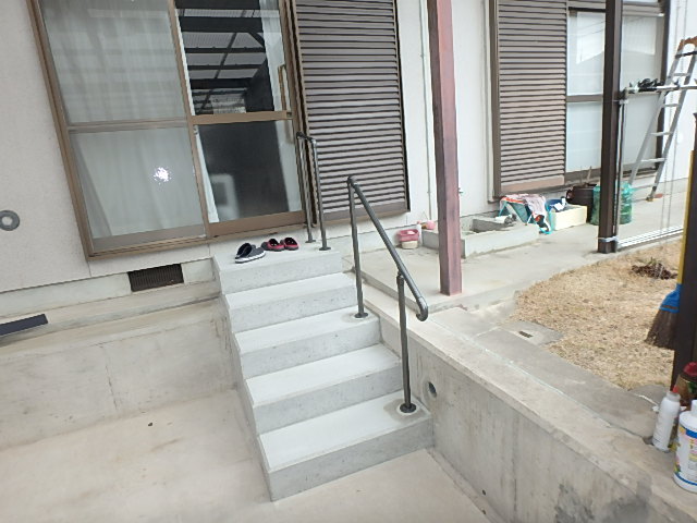 転倒の危険性があるので、コンクリートで階段と手すりを