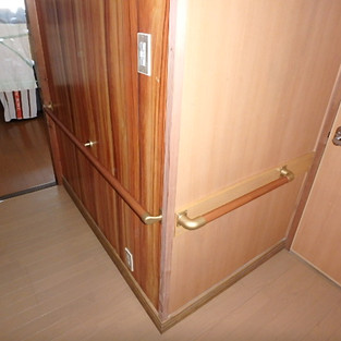 日常生活の水回り箇所の移動経路には、手摺を取付して、移動時の横転防止になり、
